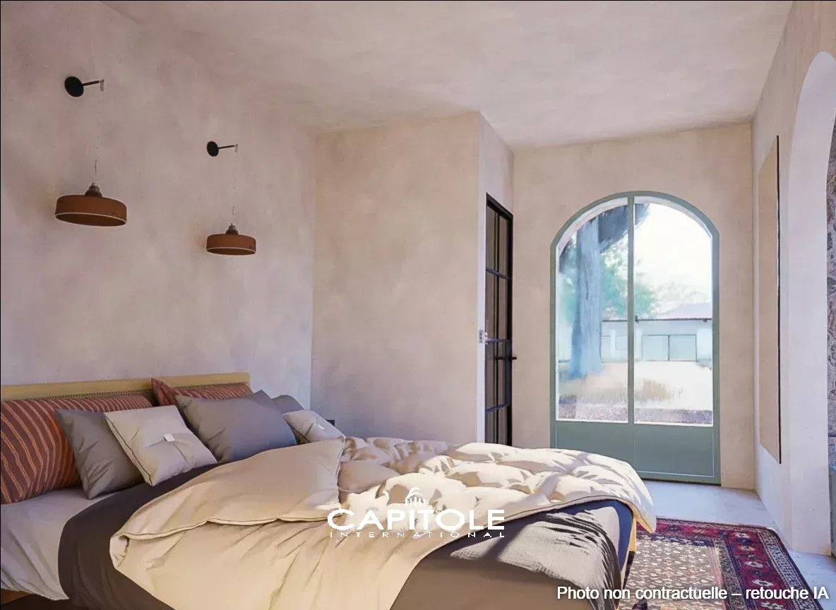 La propriété propose quatre suites, chacune bénéficiant de sa salle d’eau privative. À l’étage, la suite parentale offre une expérience résidentielle exclusive : dressing sur mesure, salle de bain complète et panorama exceptionnel sur la mer et les reliefs environnants. Un jardin d’hiver baigné de lumière vient parfaire l’atmosphère de calme et de bien-être.
